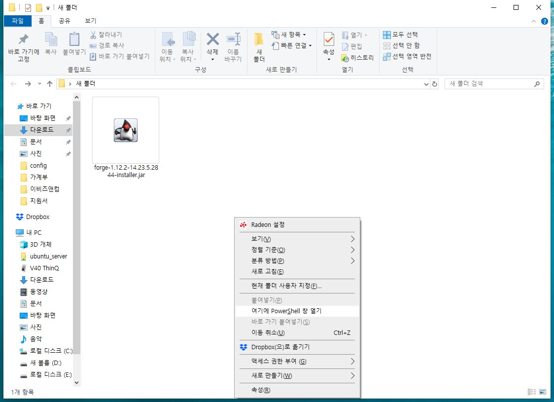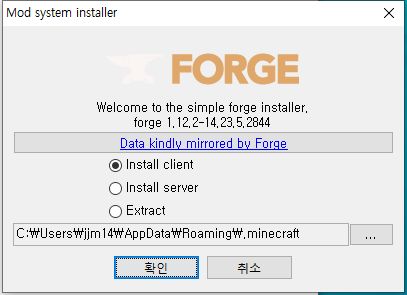 예시에는 바탕화면에 새 폴더를 만들어 그곳에 1.12.2 forge를 선택하였습니다.