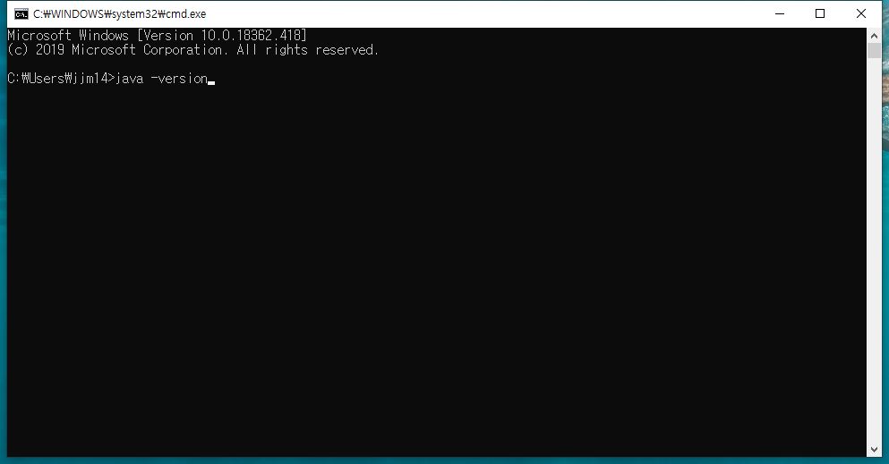 만일 정상적으로 자바가 설치되어있다면 현 자바 가상머신의 버전 등의 간략정보가 표기됩니다.