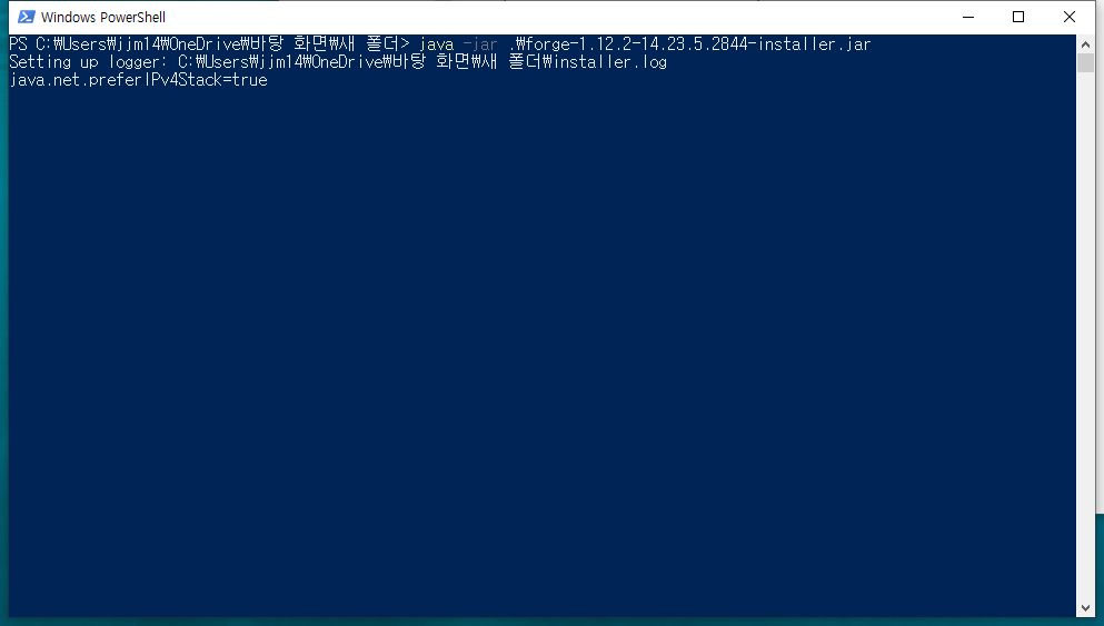 검은색의 명령 프롬프트와는 다른 파란색의 창이 나타납니다.